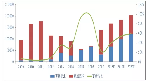 2009-2020年更新需求占比及预测