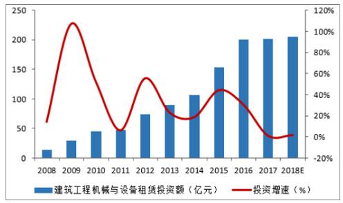 国内建筑工程机械与设备租赁行业发展较晚,但投资规模一直逐步增大。