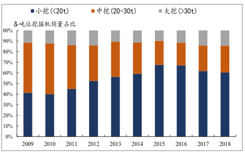 中大挖比重持续提升,表明基建和矿山需求占比提升
