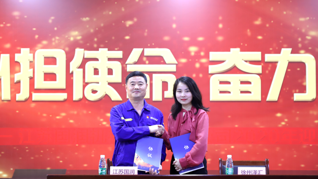▲心博在线平台(中国)官网机械总经理郭总和泽汇公司副总经理邱总进行签约