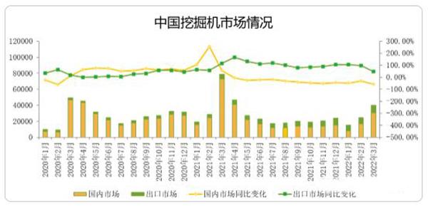 2022年开局以来,挖掘机市场表现仍疲软,前两月同比增速虽连续下降,但2月挖机同比降幅已有所收窄。
